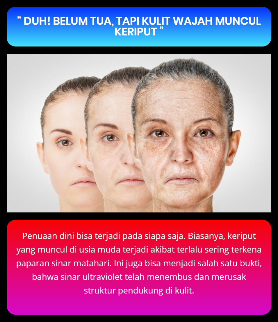 Jangan sampai kulit wajah keriput mengganggu penampilanmu di usia muda. Buruan pesan produk